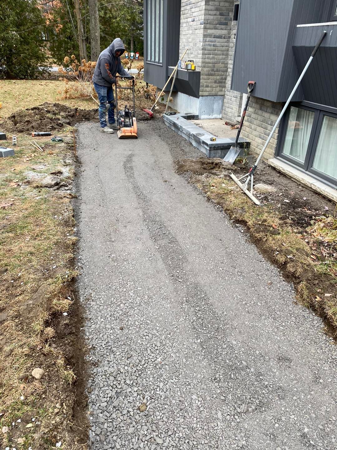 Notre galerie présente des travaux d'excavation, de pavé uni et de terrassement réalisés chez des propriétaires de votre région. Des fondations solides, des aménagements durables, des résultats visibles. À votre tour de concrétiser vos projets.